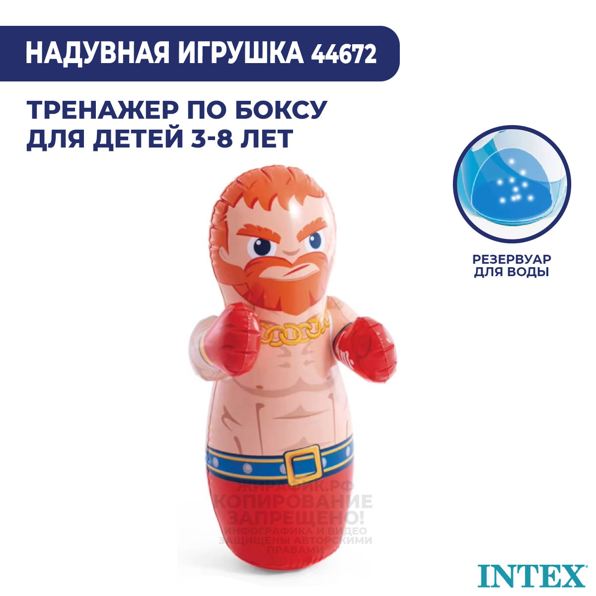 Надувная игрушка Intex «Боксер» станет любимым развлечением для вашего ребенка. Она работает по принципу неваляшки. Перед использованием ее надувают и заливают дно водой.