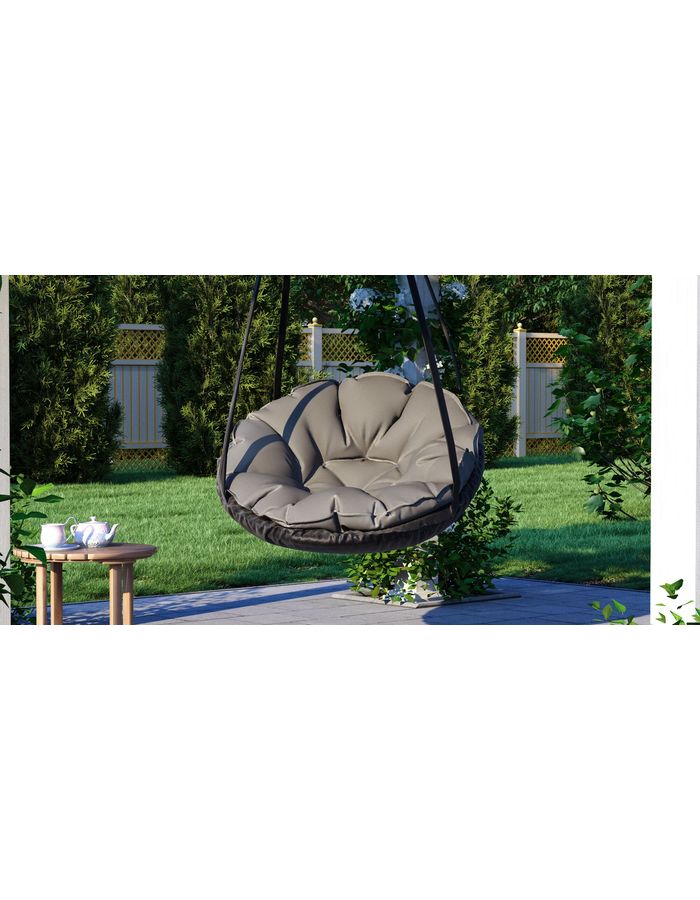 Подвесное кресло Савушка PapaSAV A-178 имеет прочный металлический каркас, выдерживающий нагрузку 150 кг и мягкое сиденье, обтянутое непромокаемой тканью Оксфорд. Диаметр качели составляет 100 см. Чехол съемный и может стираться в машинке в деликатном режиме (при температуре 30 градусов).