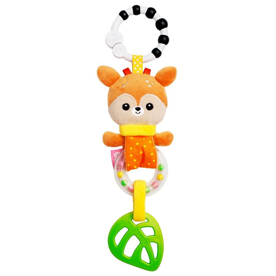 Игрушка-подвеска Мякиши «Оленёнок Бемби» выполнена в виде олененка из трикотажа, пластикового колечка с шариками и прорезывателя. Имеется крепление-кольцо на кроватку, автокресло или коляску. Есть фактурная вышивка и тактильные вставки.