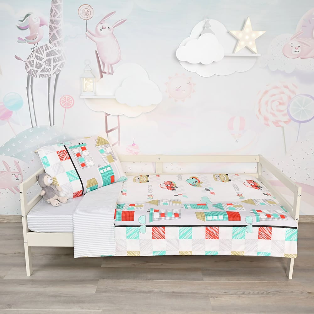 Комплект в кроватку Глобэкс 5142 состоит из 3-х предметов: наволочки, простыни на резинке и пододеяльника. Постельное белье предназначено для кроватей размерами 160х80 см. Оно выполнено из высококачественного хлопкового материала – перкаля. Комплект украшен красивым рисунком.