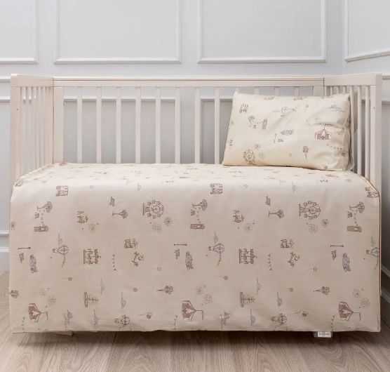 Комплект Лаппетти Парк выполнен из 100% хлопка высочайшего качества – сатин. Этот материал идеально подходит для детского постельного белья благодаря своим уникальным свойствам. В основе дизайна — нежные пастельные рисунки волшебного парка: колесо обозрения, карусели, ярмарочные палатки, воздушные шары, фонари, деревья и лёгкие гирлянды. Эти аккуратные иллюстрации создают атмосферу праздника и умиротворения, не перегружая пространство.