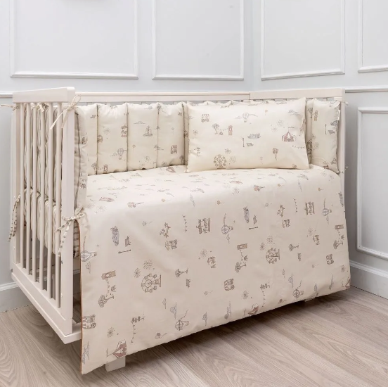 Комплект Лаппетти Парк выполнен из 100% хлопка высочайшего качества – сатин. Этот материал идеально подходит для детского постельного белья благодаря своим уникальным свойствам. В основе дизайна — нежные пастельные рисунки волшебного парка: колесо обозрения, карусели, ярмарочные палатки, воздушные шары, фонари, деревья и лёгкие гирлянды. Эти аккуратные иллюстрации создают атмосферу праздника и умиротворения, не перегружая пространство.