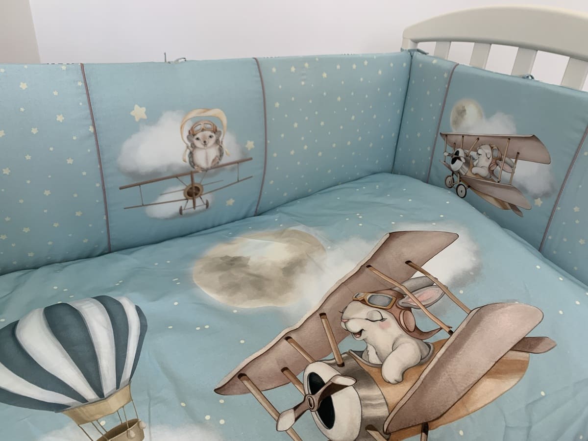 Комплект детского постельного белья Lappetti «Навстречу приключениям» 6098 предназначен для кроватки прямоугольной формы. Он состоит из 6 предметов – подушки, одеяла, наволочки, пододеяльника, простыни на резинке и бампера из 4-х частей со съемными чехлами.