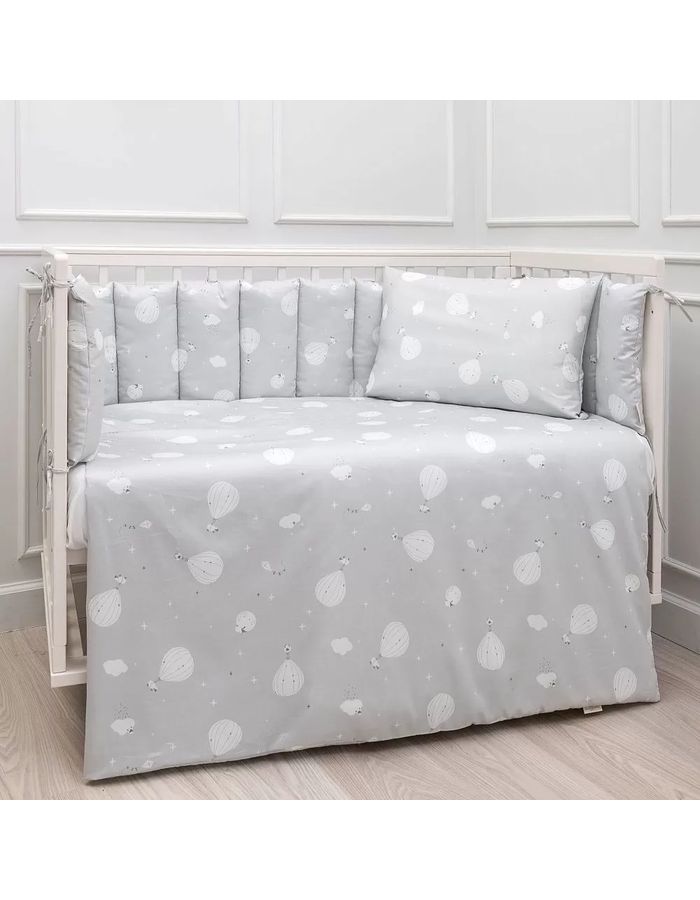 Комплект включает в себя подушку, одеяло, наволочку, пододеяльник, простынь на резинке и бампер из 4-х частей с несъемными чехлами на молнии. Отличительные черты постельного белья от Lappetti – это ровные и прочные швы, строгое соответствие указанным размерам и безукоризненный крой. Данное постельное белье станет отличным украшением кроватки вашего малыша.