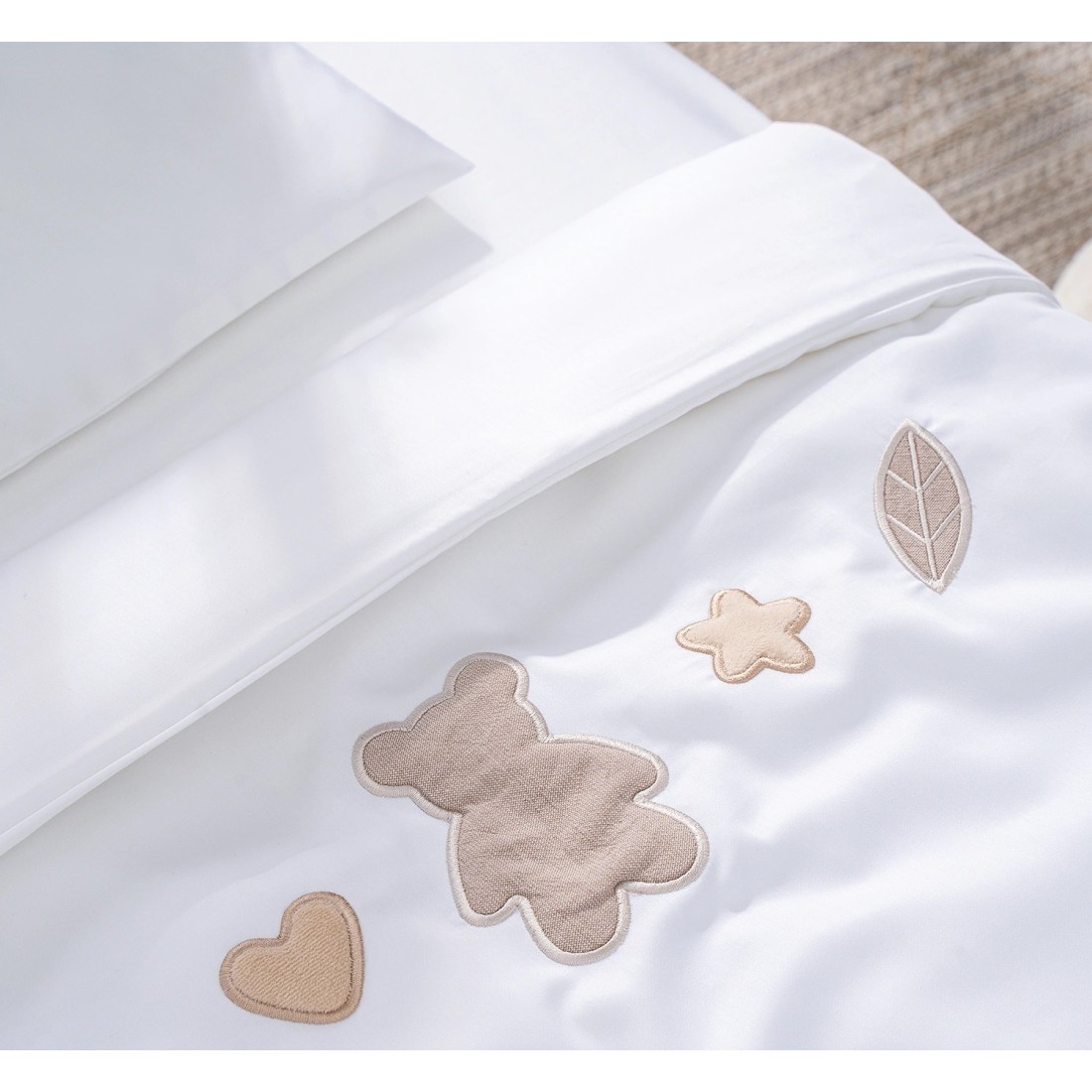 В набор для кроватки Perina Teddy Sateen Collection входят два предмета. Комплект выполнен из премиального сатина, который отличается особой нежностью и мягкостью. Ткань имеет плотность 300 ТС и обладает эффектом шелка. На ней также присутствует вышивка.