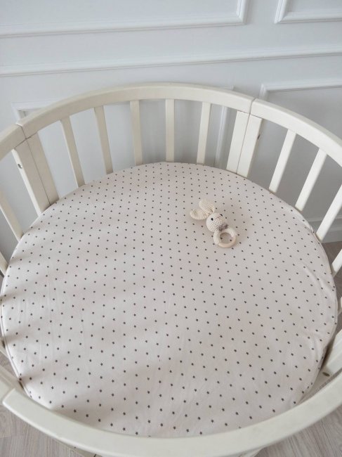 Трикотажная простынь Lappetti «Звезды» 9005 предназначена для матрасов круглой формы размерами 75х75 см. Она выполнена из гипоаллергенного материала (хлопка), прочная, имеет гладкую поверхность и не теряет цвет в процессе эксплуатации, а также на ней не образуются «катышки». Простынь оснащена резинкой по периметру для надежной фиксации на матрасе. Ее можно стирать при температуре не выше 30°С.