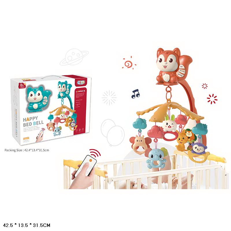 Мобиль управляется при помощи пульта. Съемные игрушки можно использовать как прорезыватели для зубов, благодаря безопасным резиновым вставкам: милая обезьянка, у которой можно погрызть банан, у зайчика резиновые ушки и хвостик морковки. Резиновые крылышки у бабочки двигаются вверх и вниз. У слоника носик выполнен кнопкой. Для работы требуется 3 батарейки типа АА. Громкость звука регулируется.