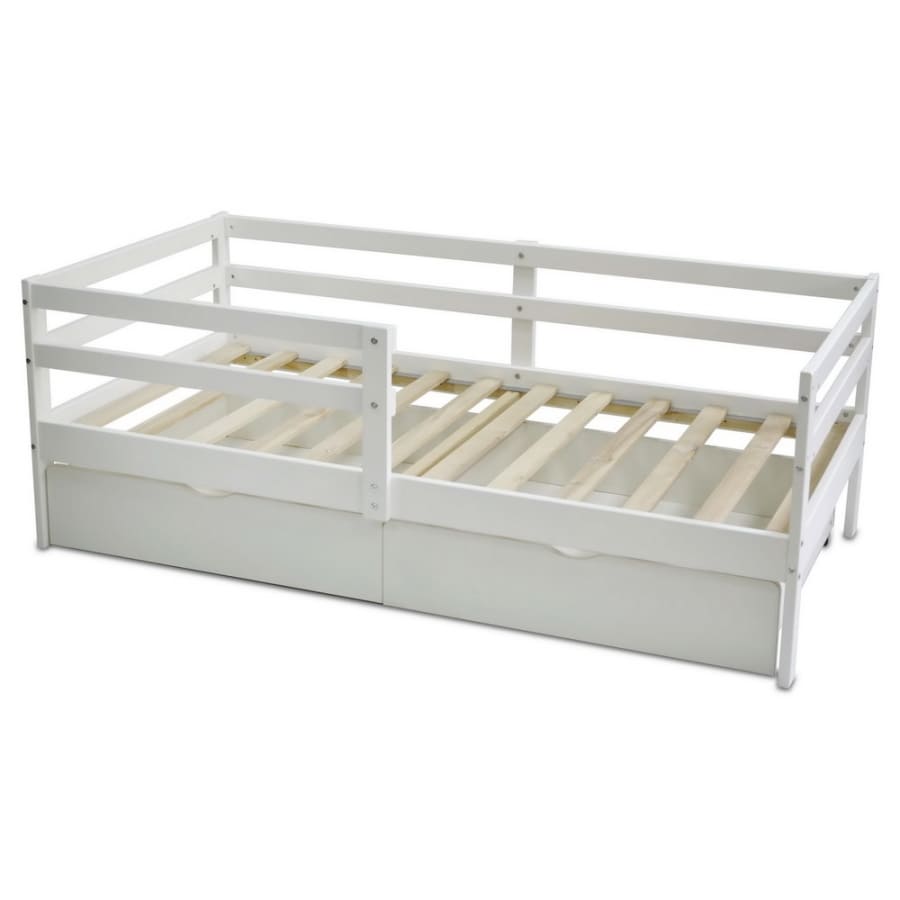 В кроватке есть защитные бортики с 2-х сторон, благодаря которым ребенок не упадет во время сна. Их можно снять или переставить с одной стороны на другую. Под кроватью легко делать влажную уборку. Под кроватью есть 2 выдвижных ящика для вещей.