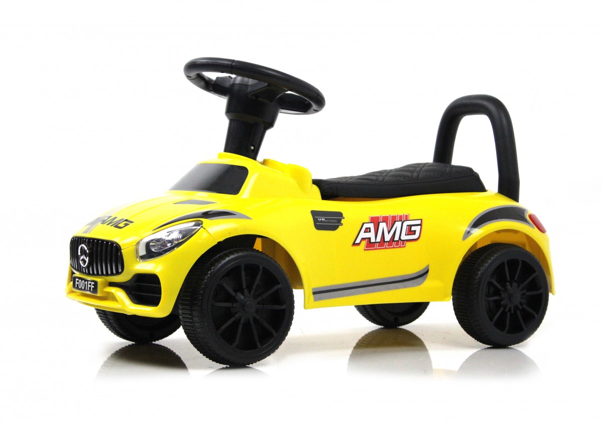 Детская каталка River Toys F001FF предназначена для катания малышей в возрасте от 1 до 3 лет. Модель представляет собой копию седана марки Mercedes-Benz. В ней предусмотрены световые и звуковые эффекты, работающие от батареек. Сиденье обтянуто эко-кожей. Колеса выполнены из пластика.