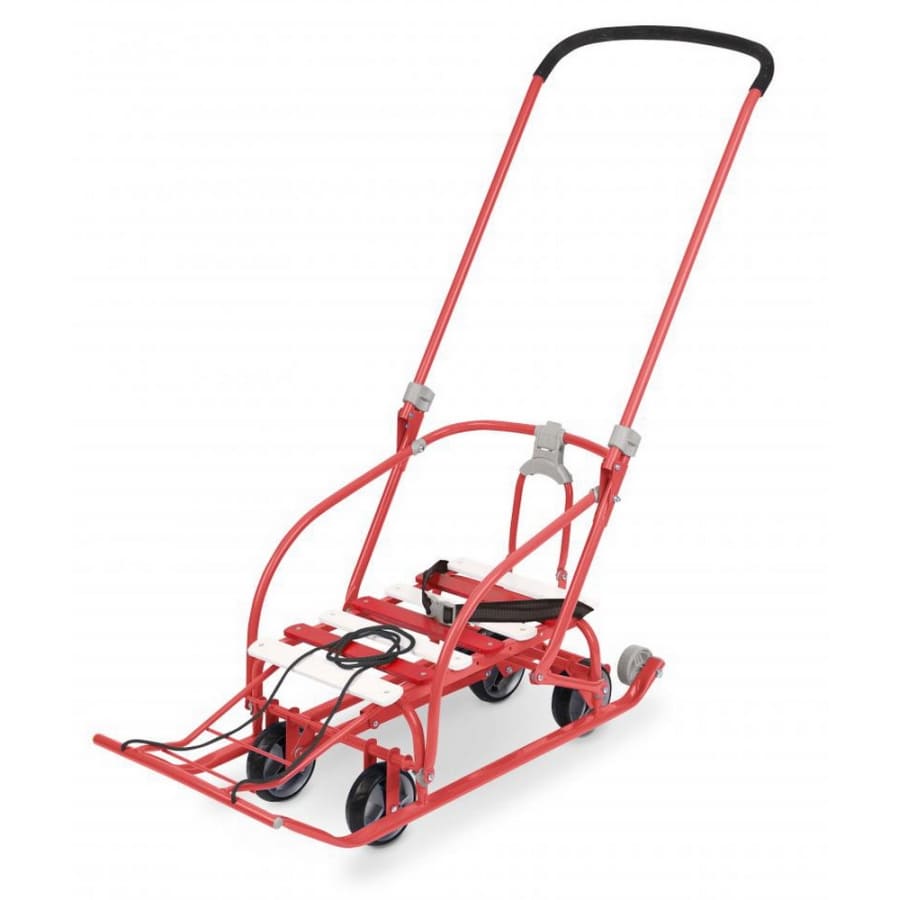 Плоские полозья шириной 40 мм обеспечивают отличную устойчивость на снегу, а удлиненная база и поперечная рейка повышают комфорт и безопасность ребенка. Для дополнительной защиты предусмотрен ремень безопасности, а обрезиненные колеса на полозьях облегчают передвижение санок в сложных условиях.