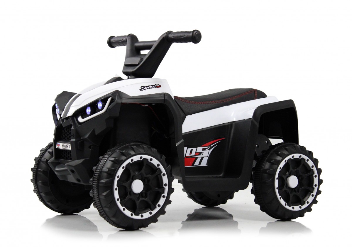 RiverToys K004PX – красивый детский электроквадроцикл, специально разработанный для маленьких путешественников. Фронтальные фары имеют подсветку, а возможность использования клаксона и заводских мелодий позволяет детям создать веселое звуковое сопровождение во время езды.
