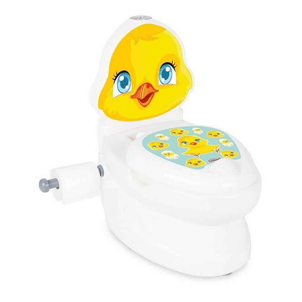 Благодаря съемной внутренней части, его удобно мыть. Закрывающаяся крыша поможет предотвратить распространение неприятных запахов. Сбоку есть держатель для туалетной бумаги. Легкий вес позволяет без проблем переносить горшок в удобное место. Реалистичности процессу придает звук сифона.