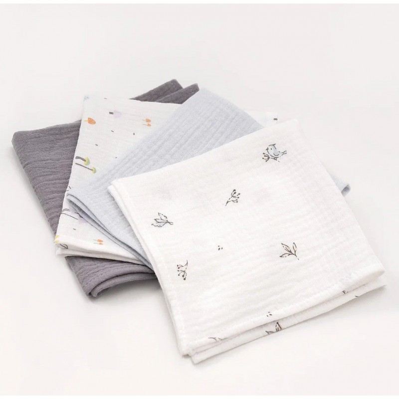 В набор входят четыре салфетки в случайном цветовом сочетании: две однотонные и две с принтом. Эти платочки не мнутся и надолго сохраняют аккуратный внешний вид, обеспечивая малышу гигиену и комфорт каждый день.