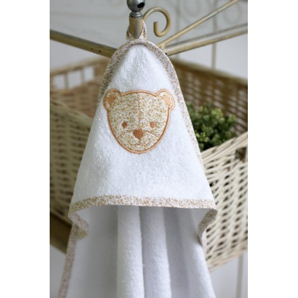 Удобство закрепления пеленки на голове (для защиты от сквозняков) обеспечивает специальный уголок. Оригинальный внешний вид пеленке придает дизайнерская вышивка с мишкой.