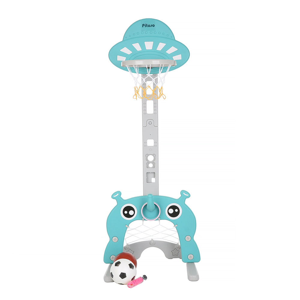 Баскетбольная стойка Pituso «Марсик» предназначена для детей в возрасте от 3 лет. Она имеет регулируемую высоту (максимальная 153 см). В комплекте помимо баскетбольного кольца есть футбольные ворота, кольцеброс, 2 мяча и 4 кольца.