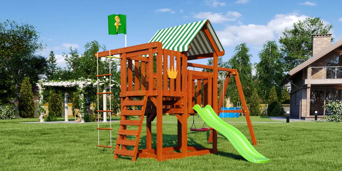 Древесина хорошо отшлифована покрыта безопасными лакокрасочными материалами (Sherwin-Williams), предназначенными для использования в уличных игровых площадках для детей и имеющими разрешающие сертификаты.