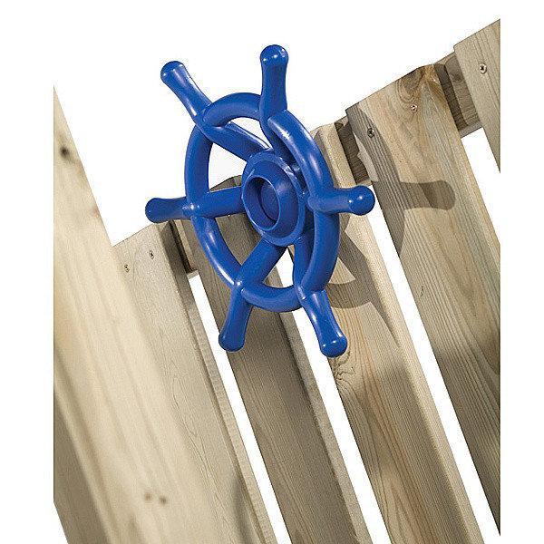Штурвал диаметром 35 см используется в качестве дополнительного игрового оборудования для детских игровых площадок. Изделие выполнено из пластика и имеет литую конструкцию. Поставляется в комплекте с креплением, обеспечивающим вращение штурвала.