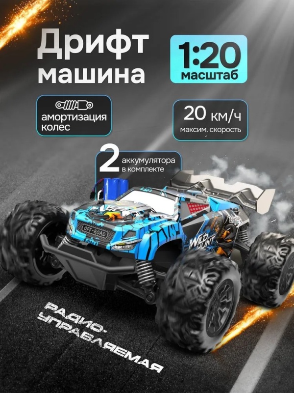 Большие колёса с протектором и высокая проходимость — машинка легко преодолевает горы, песок и лес, не застревая и не теряя сцепления. Улучшенная амортизация защищает машинку от ударов и вибраций, продлевая срок службы и делая управление более комфортным. Ударопрочный кузов выдерживает многочисленные столкновения, перевороты и экстремальные гонки.