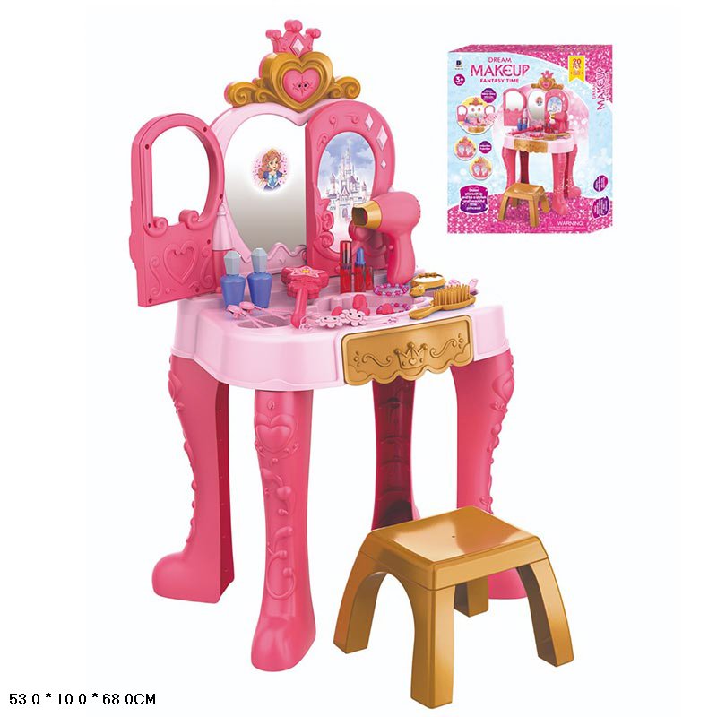 Игровой набор «Красотка» представляет собой туалетный столик с зеркалом и стульчиком, а также аксессуарами для создания новых образов и причесок. Набор оснащен световыми и звуковыми эффектами (звуки фена). С этим набором можно играть в салон красоты, делать макияж и прически.