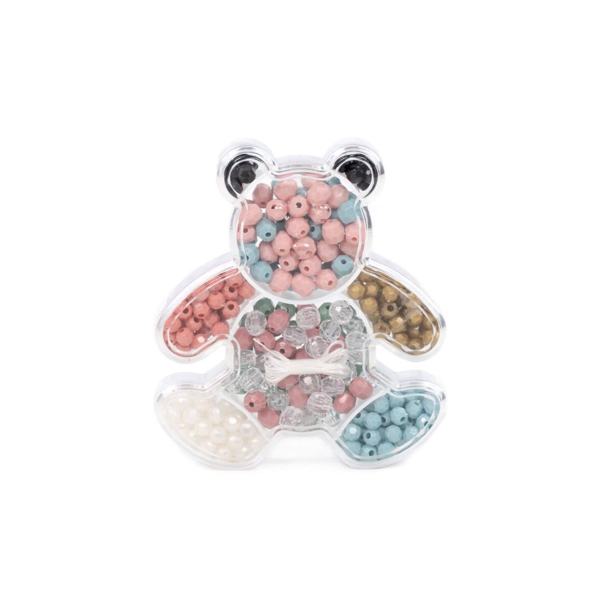 Набор для детского творчества Полесье «Мишка №1» позволяет девочкам от 6 лет поиграть в дизайнера бижутерии. Он включает в себя 318 элементов (резиночки, бусинки). Бусинки отличаются цветом, формой и размером.