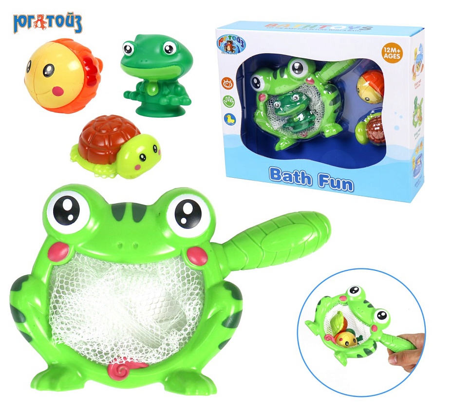 Набор для купания Лягушка-сачок – это красочная и интересная игрушка я которой можно принимать ванную. Сачок может держаться на воде. Ребёнок может ловить игрушки в ванной руками или с помощью сачка-лягушки и складывать их туда. Эта занимательная и веселая игра не только развлечет ребенка, но и поможет в развитии тактильных ощущений, внимания, пространственного мышления, моторики, познавательных способностей и общих двигательных навыков.