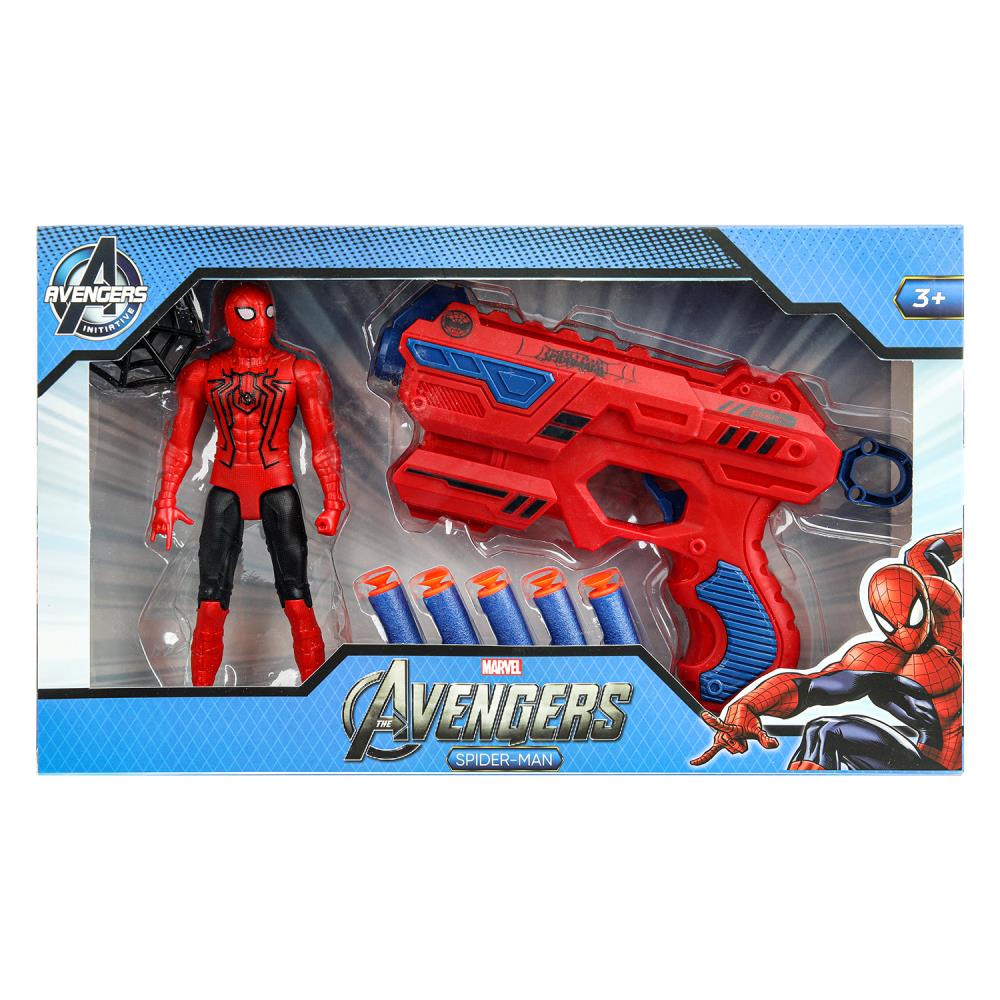 Бластер с мягкими пулями Команда мстителей непременно понравится юному герою: 5 безопасных мягких пули на присосках, яркий дизайн, фигурка супергероя в комплекте.