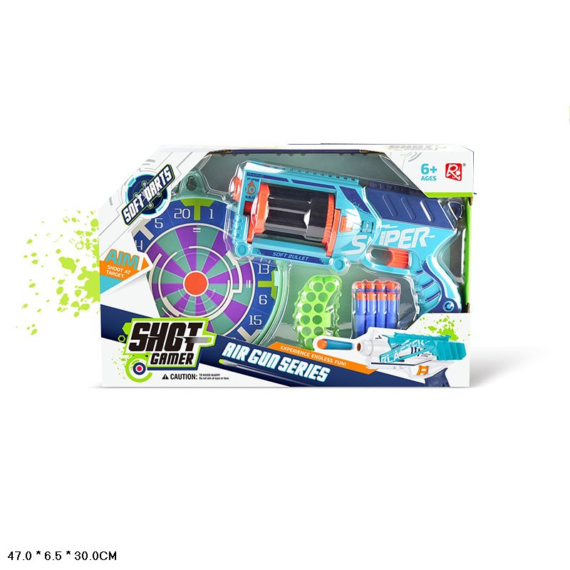 Стильная модель представляет собой игровое оружие в виде космического пистолета. Игрушку удобно держать в руках и имитировать стрельбу. Безопасные пули на присосках, не травмируют и не оставляют следов на мебели и стенах. Простой механизм стрельбы – нужно лишь вставить несколько пуль и нажать на курок. С таким пистолетом мальчики смогут примерить на себя роль настоящих полицейских или стражей порядка и весело провести свободное время. В комплекте прилагаются патроны с мягким наконечником в количестве 8-ми штук, пистолет, мишень и держатель для пуль.