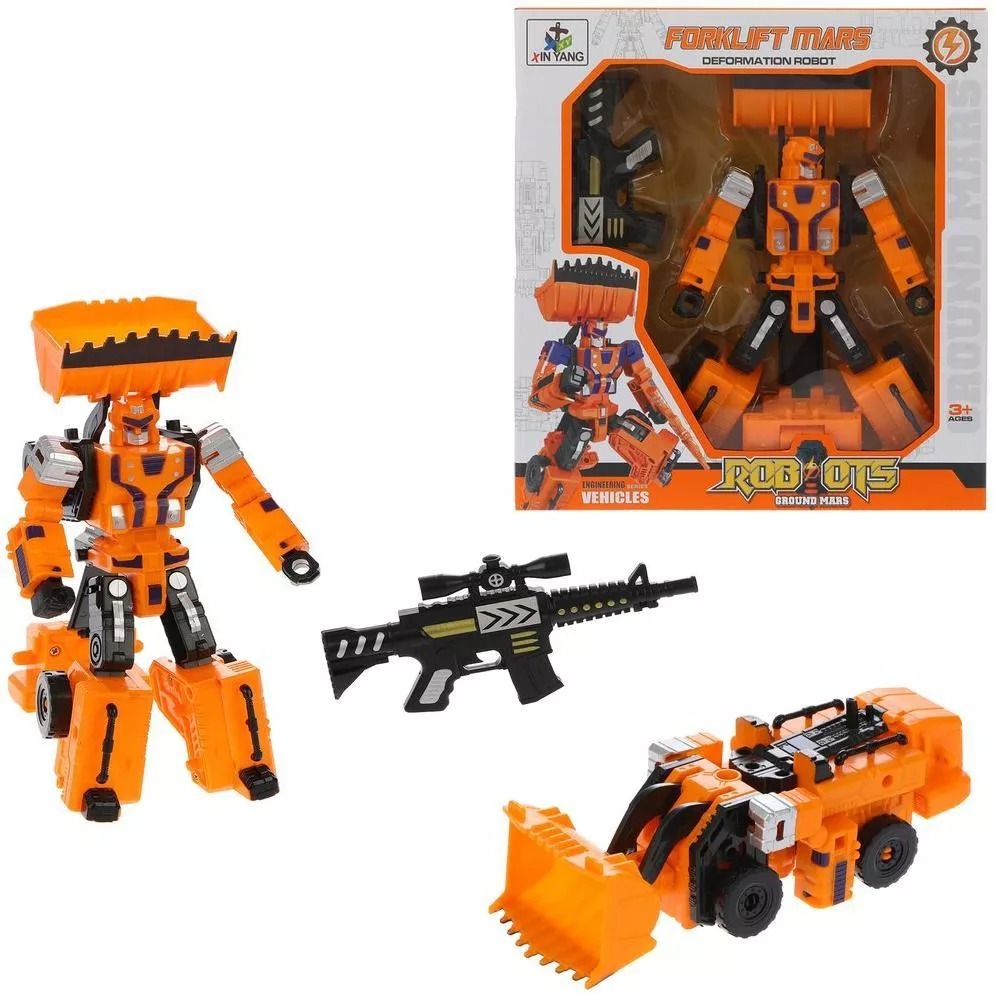 Робот-трансформер Наша Игрушка 6618B предназначен для мальчиков в возрасте от 3 лет. При помощи несложных манипуляций робот трансформируется в машину-грейдер и обратно. В комплекте поставляется оружие. Изделие выполнено из пластика.