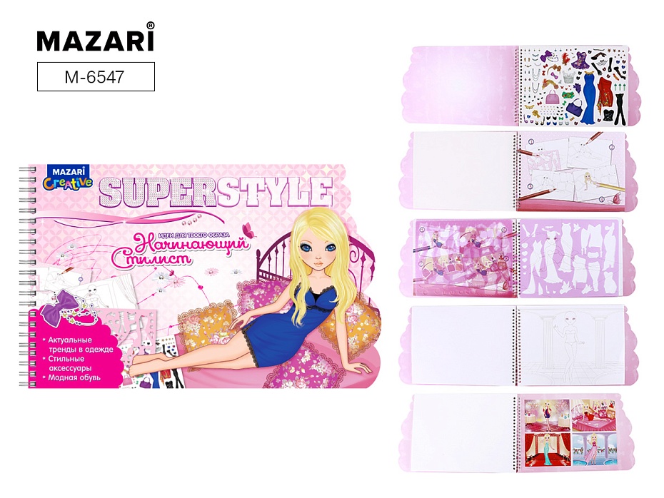 Альбом для творчества София Стилист M-6547 станет прекрасным подарком для девочки и позволит почувствовать себя настоящим модельером. В комплекте 12 страниц с многоразовыми наклейками и 24 страницы с контурными изображениями кукол. Наклейки содержат элементы одежды, обуви и аксессуаров. Контурные страницы предназначены для размещения наклеек и создания образов. Наклейки можно многократно переклеивать, что позволяет комбинировать разные варианты одежды.