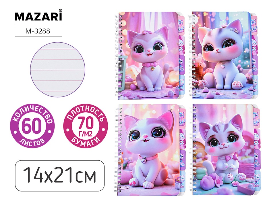 Детский блокнот на спирали в линию – яркий и удобный помощник для учебы и творчества. Внутри – белые листы с четкой разлиновкой, идеальные для аккуратных записей, а также цветные разделители, которые помогут организовать заметки по темам или предметам. Прочная металлическая спираль позволяет легко переворачивать страницы, а плотная обложка с веселым дизайном защищает блокнот от повреждений. Удобный формат поместится в рюкзак, а гладкая бумага плотностью 70 г/м² отлично подходит для письма ручкой, карандашом или фломастерами. Отличный выбор для школы, рисования и первых важных записей.