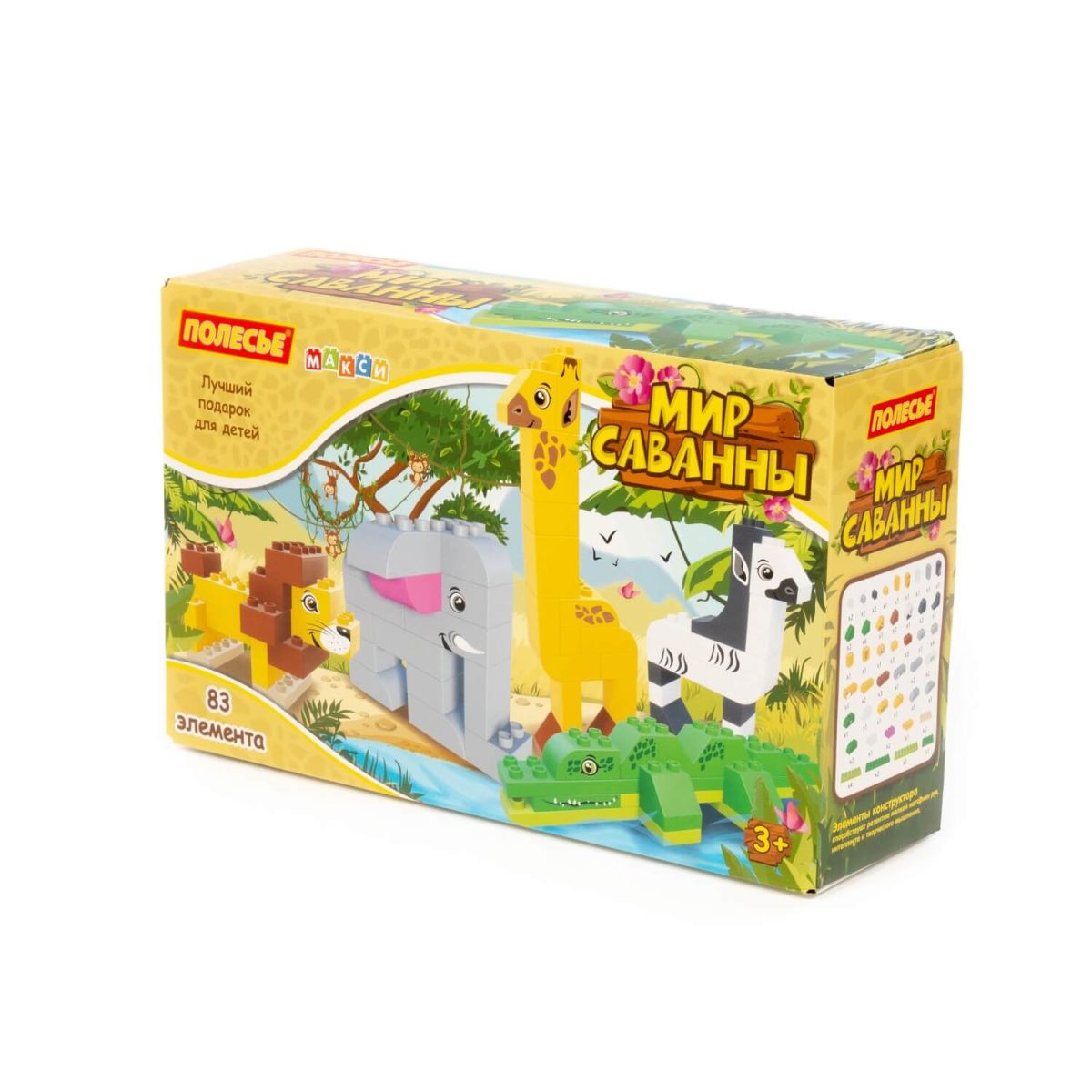 Конструктор Полесье «Макси» - «Мир саванны» состоит из 83 деталей и предназначен для детей от 3 лет. Из них можно собрать экзотических животных и придумать много интересных сценариев игры. Все элементы легко и прочно соединяются между собой.