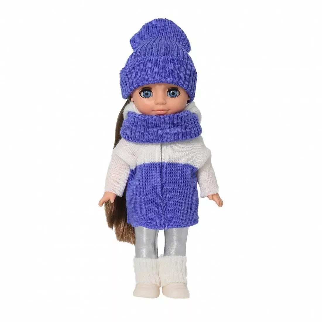 Кукла Весна Ася «Зимние забавы» предназначена для девочек от 3 лет. Она имеет высоту 28 см. Кукла одета в вязаные кардиган, снуд и шапку, а также футболку с рисунком, гетры и лосины.