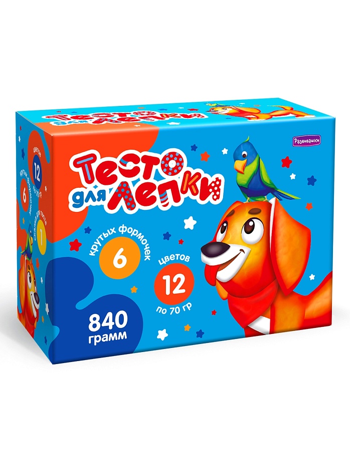 Набор теста для лепки 12 цветов. В отличие от пластилина, тесто легко мнется, имеет приятную мягкую консистенцию, принимает любую форму. Ваш ребенок может слепить из теста любую фигурку, а затем оставить ее на открытом воздухе, чтобы поделка застыла и стала необычной игрушкой. Чтобы тесто дольше сохраняло свои пластичные свойства, рекомендуем хранить в банке. В наборе есть 6 специальных формочек и скалка.