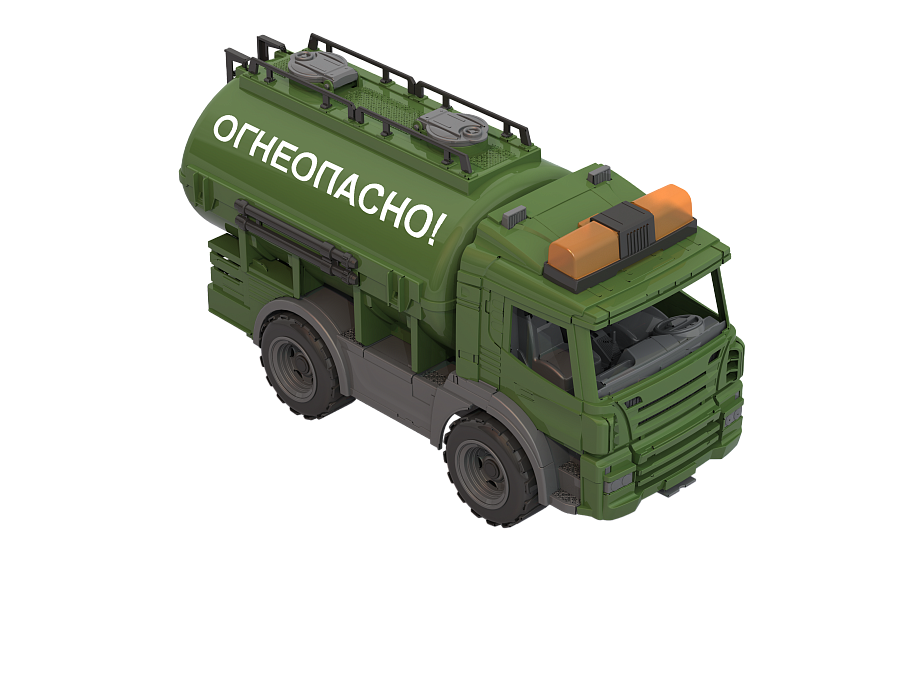 Цистерна "ОГНЕОПАСНО" снабжена двумя верхними открывающимися люками,в которые ребенок сможет наливать воду или насыпать песок. Колеса на металлических осях и специальная рама позволяют игрушке выдержать достаточно большой вес. С задней стороны цистерны есть лестница. Внутрь салона можно поместить фигурку водителя.