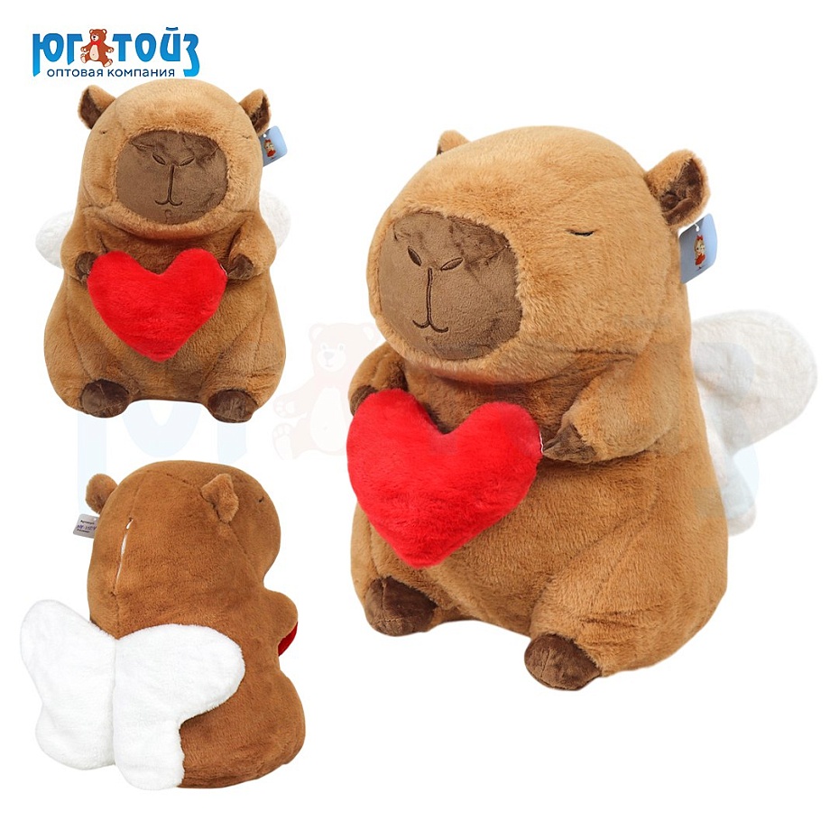 Мягкая игрушка Капибара-ангел – это очаровательный зверек в лапках держит сердечко а на спине у него белые крылья. Игрушка изготовлена из высококачественных и приятных на ощупь материалов. Она станет прекрасным дополнением к интерьеру детской комнаты и отличным подарком на любой праздник. Наполнитель игрушки — синтепон высшего качества, который обеспечивает мягкость и комфорт.