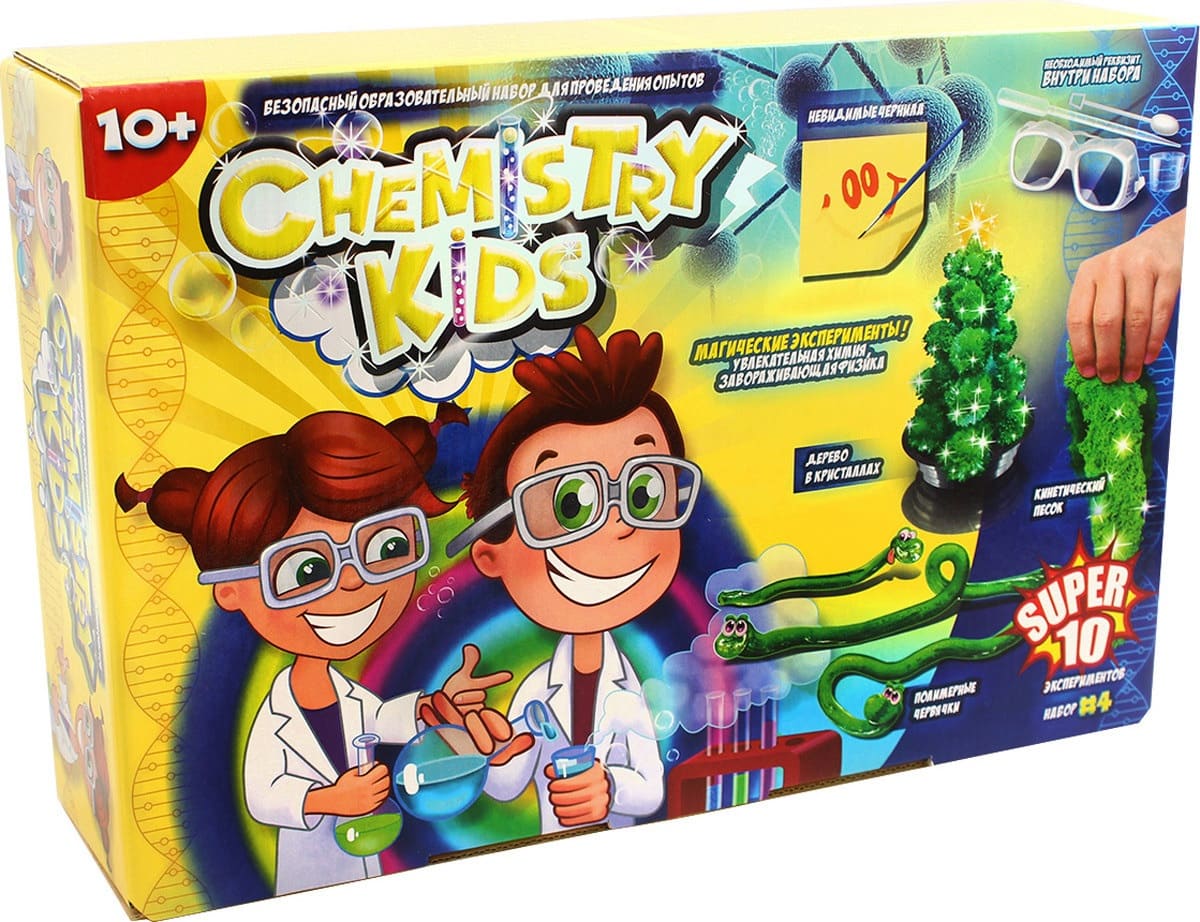 Набор для опытов Данко-Тойс CHK-01-04 познакомит ребенка с увлекательным миром экспериментов, в ходе которых он узнает суть многих химических и физических явлений. В комплект входит весь необходимых реквизит и подробная инструкция. Все реактивы безопасны, но при выполнении экспериментов необходимо соблюдать правила, указанные в инструкции.