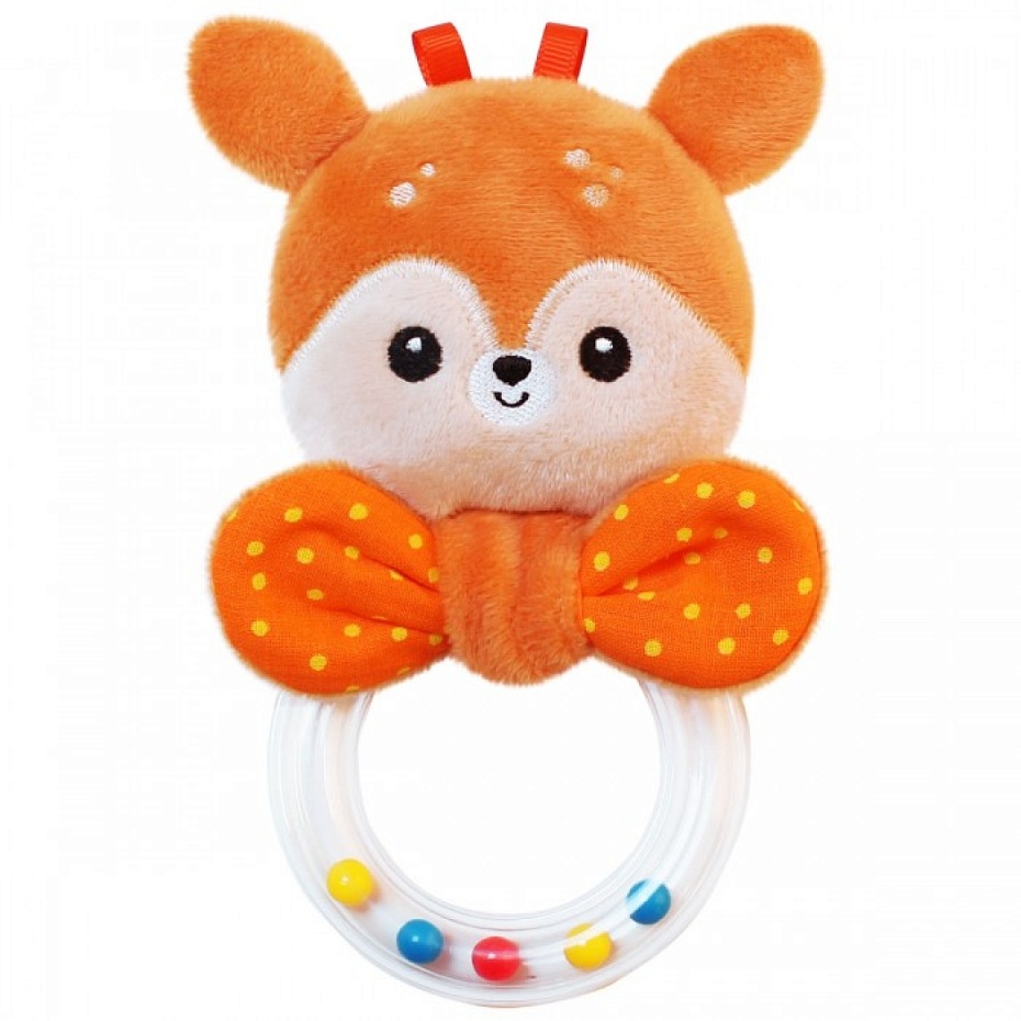 Погремушка Мякиши Оленёнок Бемби - милая игрушка с бантиком привлечет внимание вашего малыша и не позволит ему скучать. Оленёнок оснащен пластиковым кольцом, наполненным маленькими разноцветными шариками. При встряхивании игрушки шарики весело гремят. Колечко удобно сжимать маленькими пальчиками, а за разноцветными шариками малыши обожают наблюдать и прислушиваться к звукам.