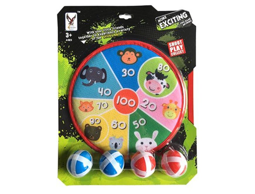 Дартс 200314648 – игровой набор, предназначенный для детей от 3 лет. Он состоит из мишени диаметром 25 см и шариков с липучками.