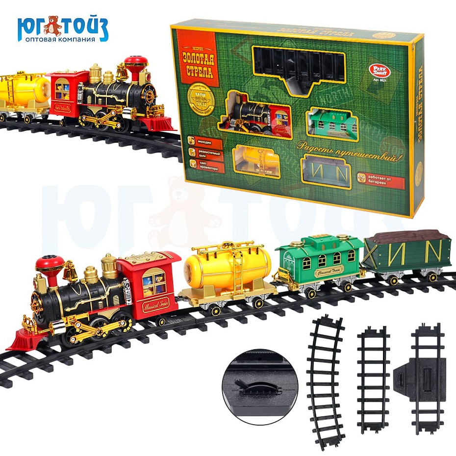 Детская железная дорога с паровозом, вагонами и станцией – это увлекательный игровой набор, который перенесет вашего малыша в мир захватывающих путешествий. Реалистичный паровоз выпускает "пар" из трубы, светит фонарем и издает звуковые эффекты, создавая атмосферу настоящего железнодорожного приключения. В набор входят пассажирский вагон для игрушечных путешественников, угольный вагон для "заправки" паровозика и цистерна. Легко соединяющиеся рельсы позволяют создавать разные маршруты, развивая фантазию и моторику ребенка. Набор выполнен из прочных и безопасных материалов, гарантирующих долгие часы веселой игры. Подарите ребенку радость управления собственной железной дорогой.