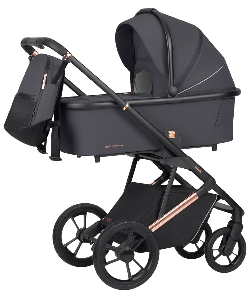Люлька имеет жесткое дно, а ее корпус выполнен из многослойного текстиля с защитой от ультрафиолета (SPF-50) и влаги. Спинка в прогулочном модуле раскладывается в 3-х положениях до горизонтального, позволяющего полноценно отдохнуть во время прогулки. Хорошую проходимость гарантируют большие резиновые колеса. В комплект входит стильный рюкзак, который крепится к родительской ручке.