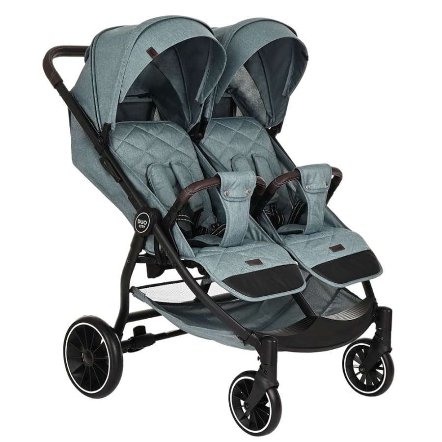 Pituso Duocity Т1 – практичная и красивая прогулочная коляска для двойни, обивка которой выполнена из льняной ткани. Каждое сидение с индивидуальной регулировкой наклона спинки при помощи ремней, высоты подножки и капора.