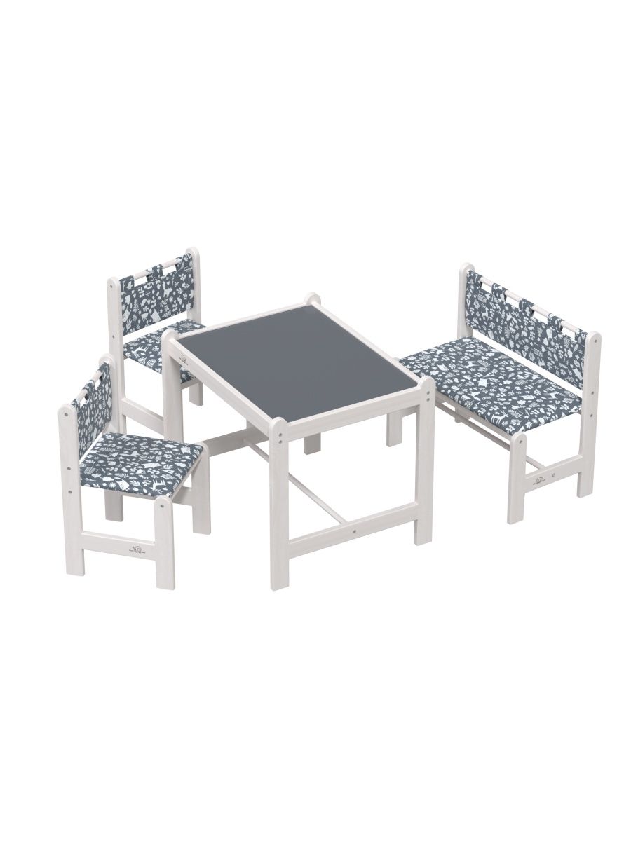 В комплект детской мебели Гном «Hobby-4», предназначенный для обучения и игр деток от 3 до 7 лет, входит стол, 2 стула и скамейка, выполненные из массива березы, покрытого прозрачным лаком, а столешница – из крашенного МДФ. Сидушки, а также спинки стульев и скамьи обтянуты мягкой тканью. Все изделия данного набора имеют закругленные углы, поэтому не травмоопасны для малыша.