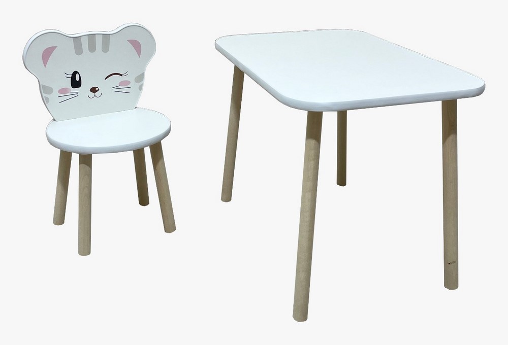 Набор детской мебели РуЛес включает в себя детский столик и стульчик. Спинка стула выполнена в форме мордочки животного.