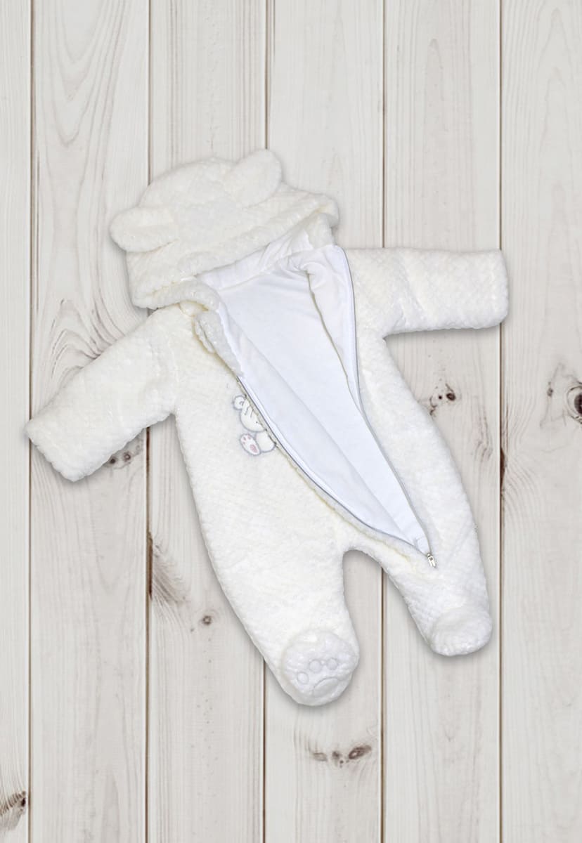 Комбинезон оснащен рукавами с закрывающимися ручками, которые защищают от холода и исключают необходимость в дополнительных рукавичках. Доступен в размерах 56-62 и 68-74 см и различных расцветках.