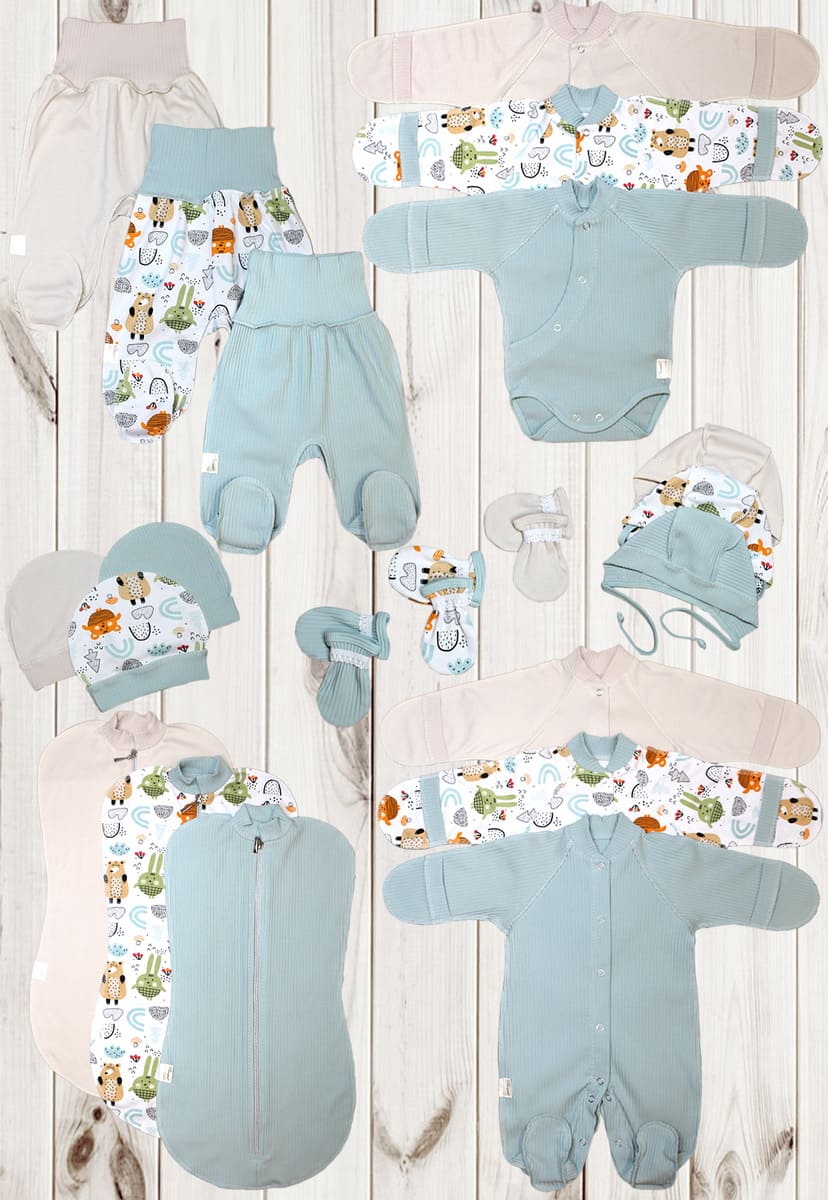 Набор трикотажного белья Балуша «Лапшуля» ш220/20 – это универсальный комплект из 22 предметов, созданный для комфортного ухода за малышом с первых дней жизни. В набор входят три комбинезона, три полукомбинезона-боди, три пары ползунков, три пелёнки-кокона, три шапочки, три чепчика, а также три пары рукавичек-царапок и очаровательная мягкая игрушка-брелок ручной работы.