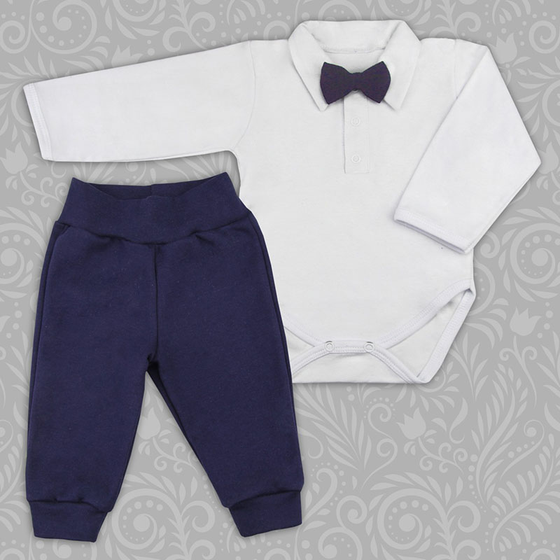 Набор одежды Топотушки нарядный для мальчика включает в себя 3 предмета: боди с длинным рукавом на кнопках, штанишки на резинке и бабочку. Изделия выполнены из натурального хлопка. Допускается машинная стирка в деликатном режиме (до 40 градусов).
