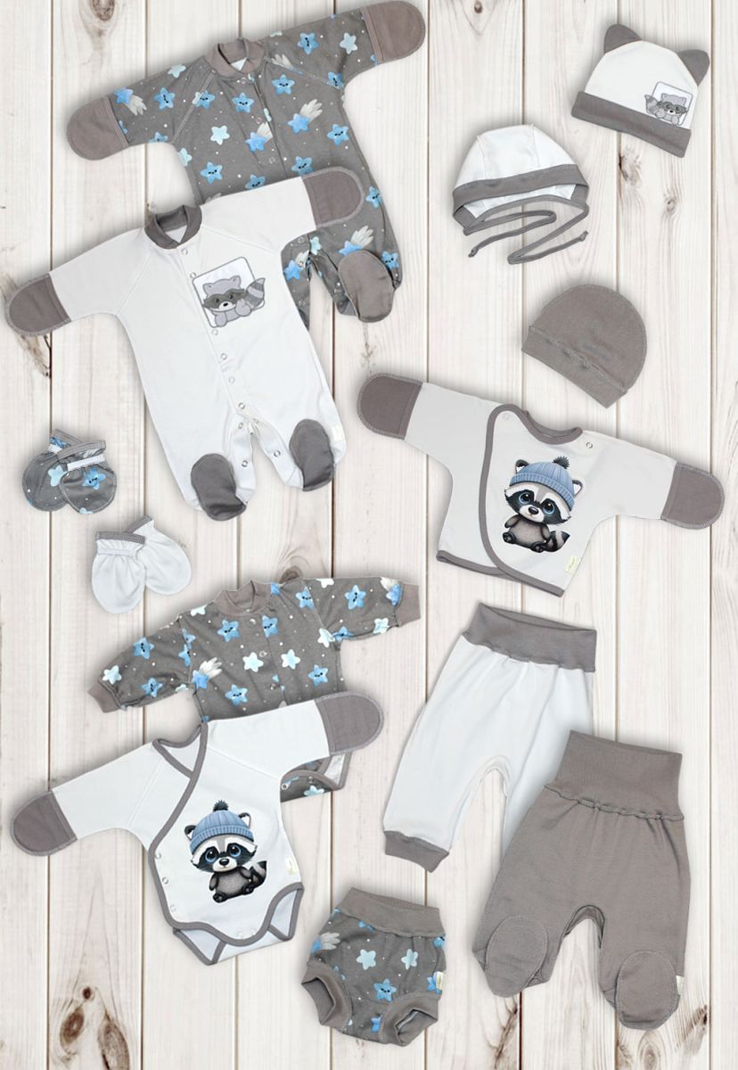 Трикотажный набор Енот Сеня-Гоша ш240/19 от Балуша – это идеальный выбор для тех, кто ценит качество, комфорт и милый дизайн. В комплект входят: два комбинезона: один однотонный с милой вышивкой енота, другой – яркий и цветной. Оба выполнены из мягкого интерлока. Два полукомбинезона-боди: один однотонный с веселой накаткой, другой – в яркой цветовой гамме. Два вида ползунков: с открытыми и закрытыми ножками, из однотонного и цветного интерлока. Кофточка с закрытыми ручками: однотонная, с очаровательной накаткой, идеально подойдет для прохладных дней. Три головных убора: шапочка с вышивкой, чепчик и еще одна шапочка – для защиты от сквозняков и стильных образов. Трусики на памперс: удобные и практичные, из цветного интерлока. Две пары рукавичек-царапок: одна пара из цветного, другая – из однотонного интерлока, чтобы нежные ручки малыша были в тепле и безопасности.
