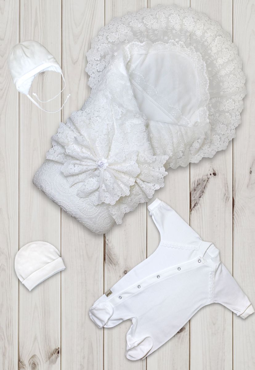 Комплект на выписку Балуша «Джелато» – набор из 6 предметов, идеально подходящий для выписки в весенний или осенний период, для зимнего варианта можно добавить кокон-утеплитель ш180/66. В комплект входит: одеяло из кружевного полотна, нарядный уголок, комбинезон трикотажный, шапочка тёплая и трикотажная, а также бант на резинке для торжественного вида.