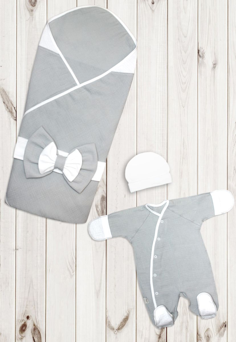 Комплект на выписку Балуша «Мой любимчик» – набор из 4 предметов, идеально подходящий для выписки в летний период. В комплект входит: плед 90х90см, комбинезон, рукава с отворотами-царапками, шапочка и бант на липучке для торжественного вида.