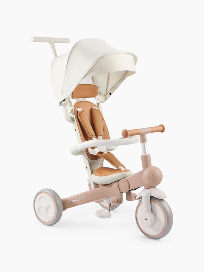 Happy Baby Mercury Pro – красивый и многофункциональный трёхколёсный велосипед для прогулок на свежем воздухе. Он оснащен высокой спинкой, складной подножкой и откидным капором от солнца, который регулируется по высоте. Родители могу управлять велосипедом при помощи ручки-толкателя, которая регулируется по высоте. Стояночный тормоз блокирует задние колеса. Педали можно поставить в режим «холостого хода», а можно вернуть в стандарнтный режим, чтобы малыш мог кататься самостоятельно. Велосипед легко складывается для транспортировки и хранения.